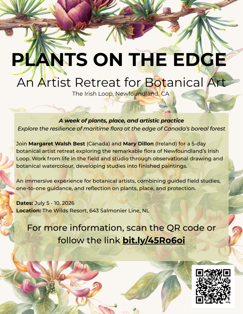 PLANTS ON THE EDGE: A Botanical Art WorkshopJuly 5 – 10, 2026The Wilds Resort, Salmonier River, Route 90, Newfoundland, Canada